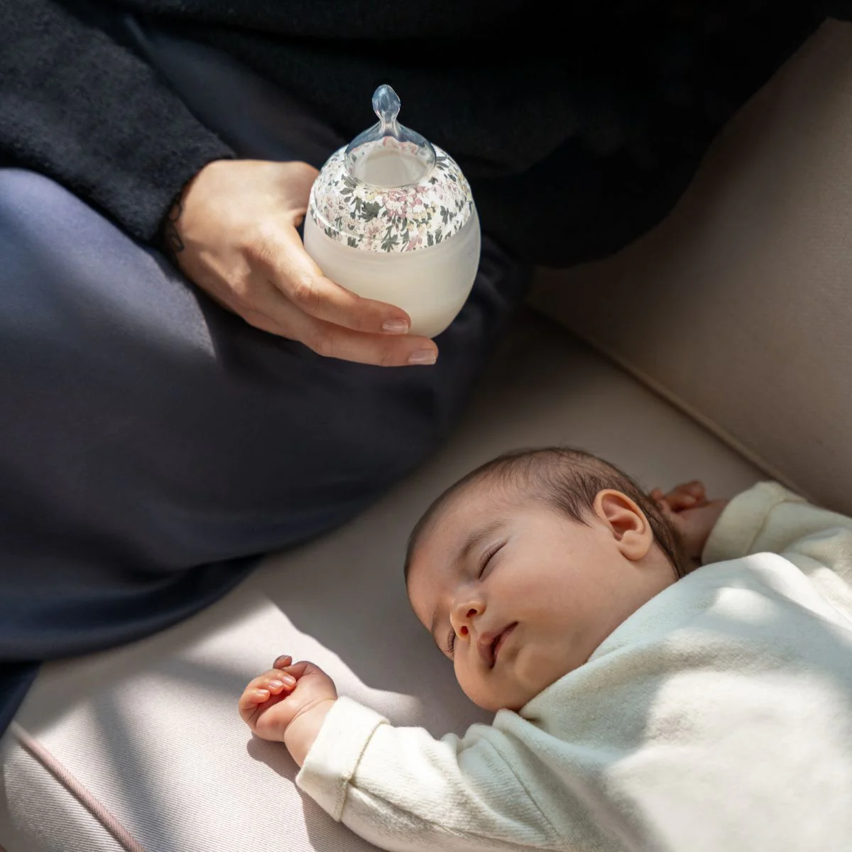 Nous dĂ©conseillons l'utilisation du biberon 330 ml dès la naissance : son format, peu adaptĂ© aux petites quantitĂ©s de lait que prenne les nourrissons, peut favoriser l’ingestion d’air et ainsi accentuer les coliques.Â